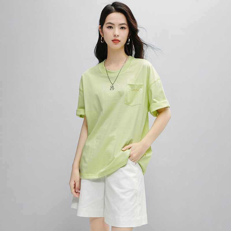大洪官方轻氧T高级休闲简约显瘦圆领短袖T恤时尚宽松气质纯色上衣