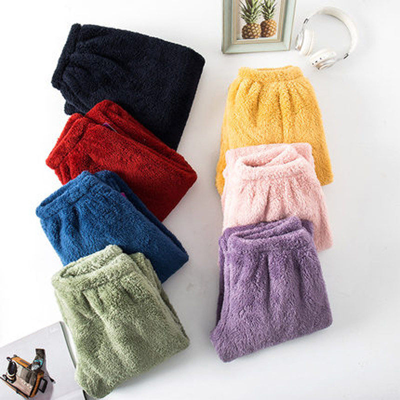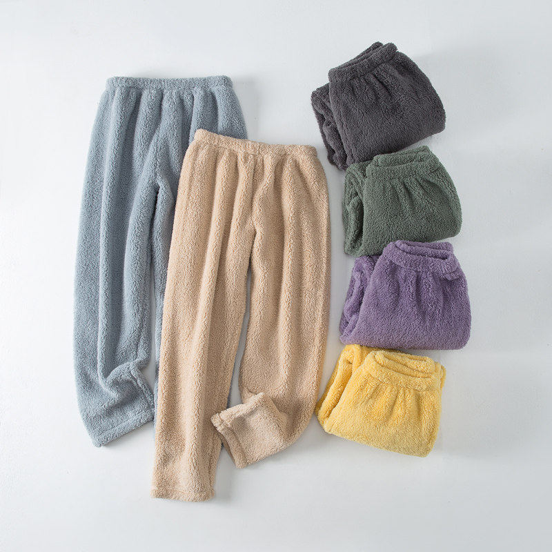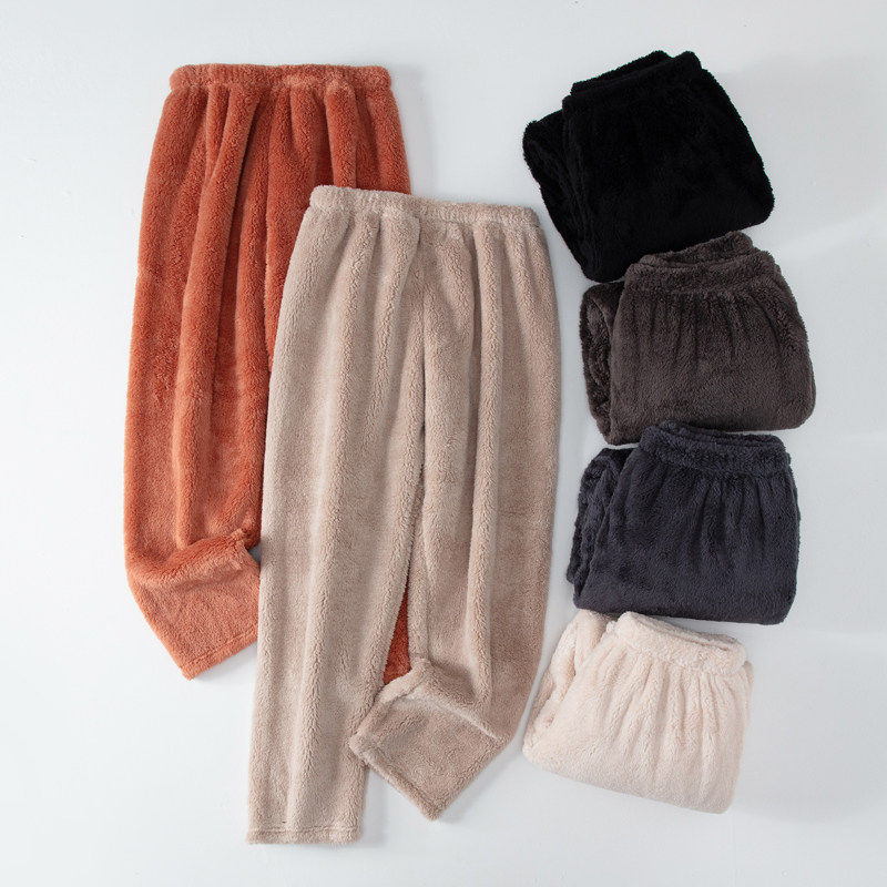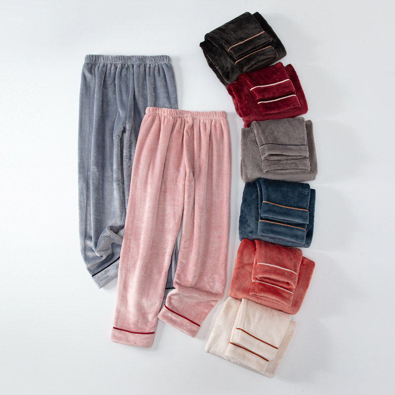 红豆秋冬季珊瑚绒保暖睡裤女可外穿家居服法兰绒男士大码加厚加绒