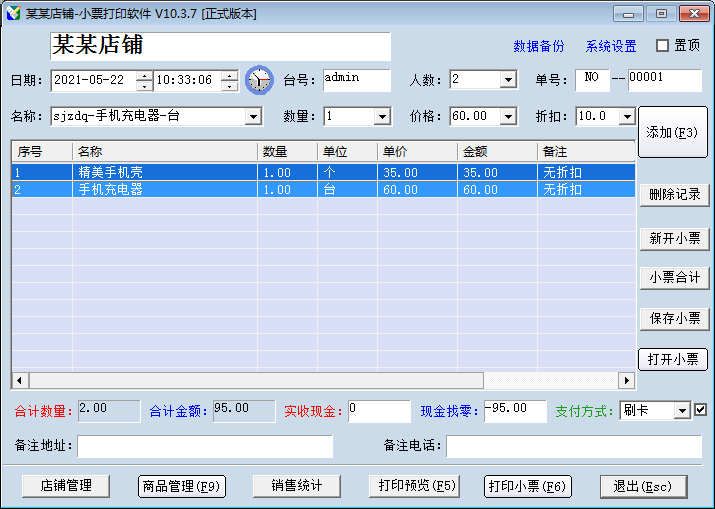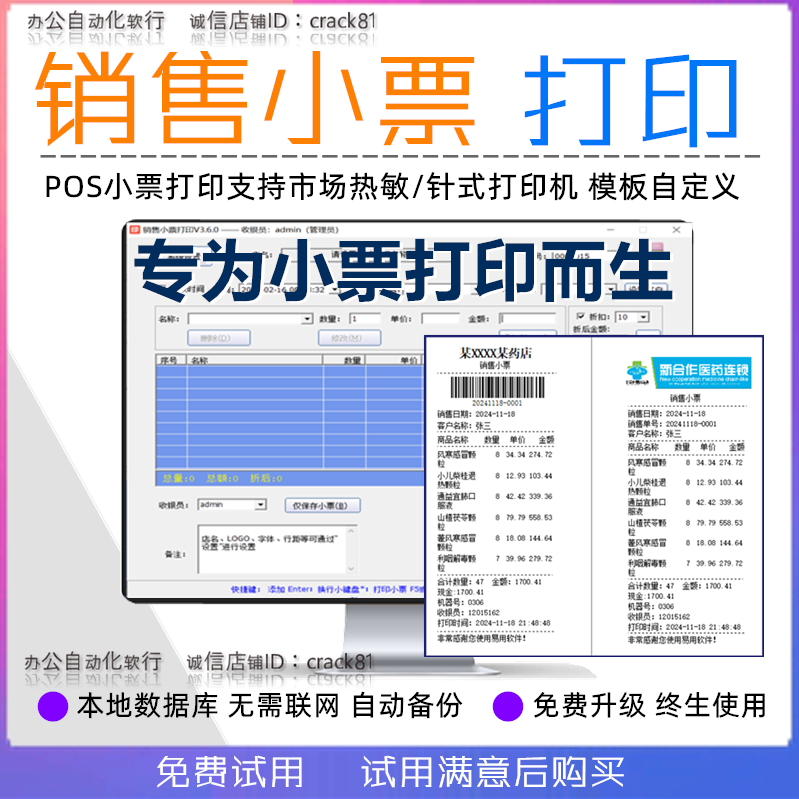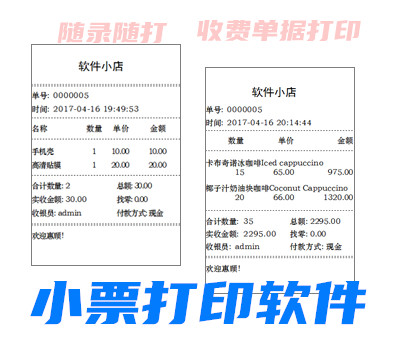 简洁销售小票打印软件系统付款收银收款收据出库清单批量自定义