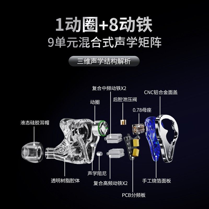NICEHCK原道NX8入耳式HiFi有线耳机圈铁压电陶瓷混合八单元耳塞
