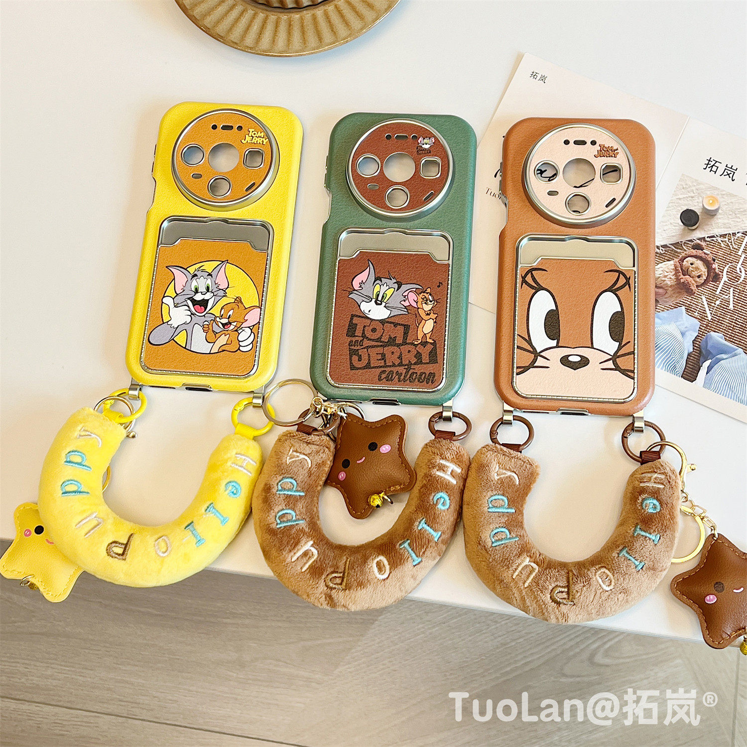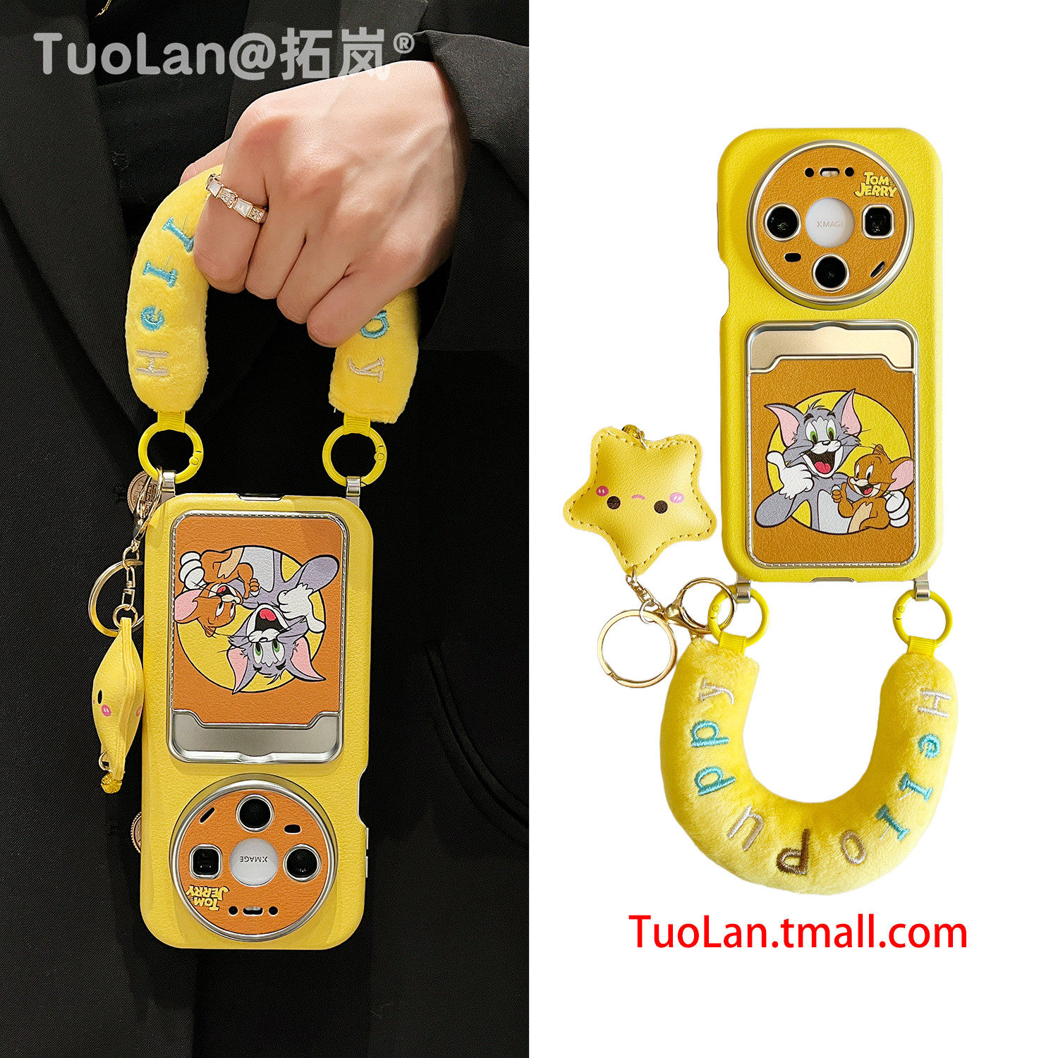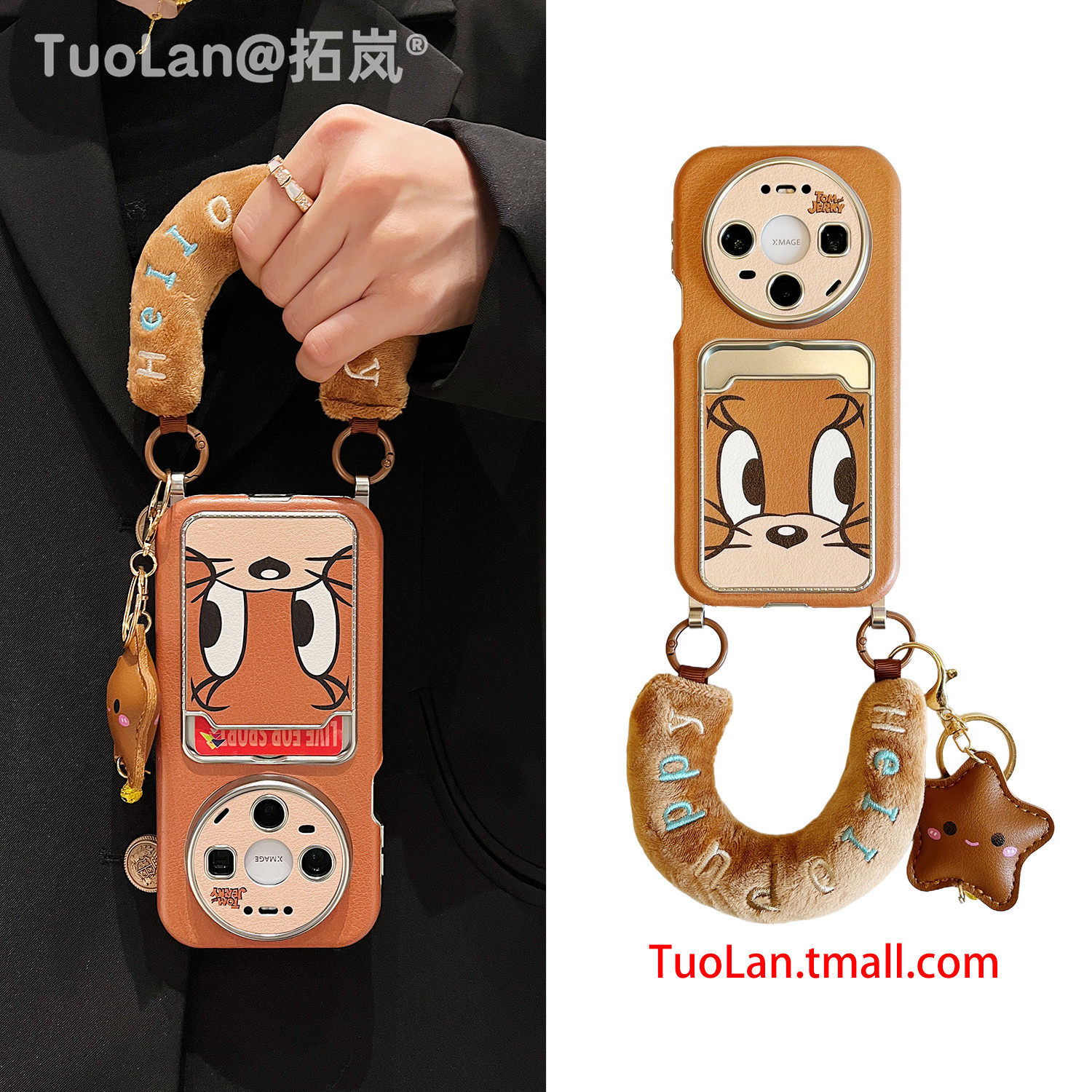 拓岚 适用华为mate80promax斜跨手机壳动漫卡通猫和老鼠C腕带毛绒挂绳新款mate80/70/60皮质卡包pura70/80pro