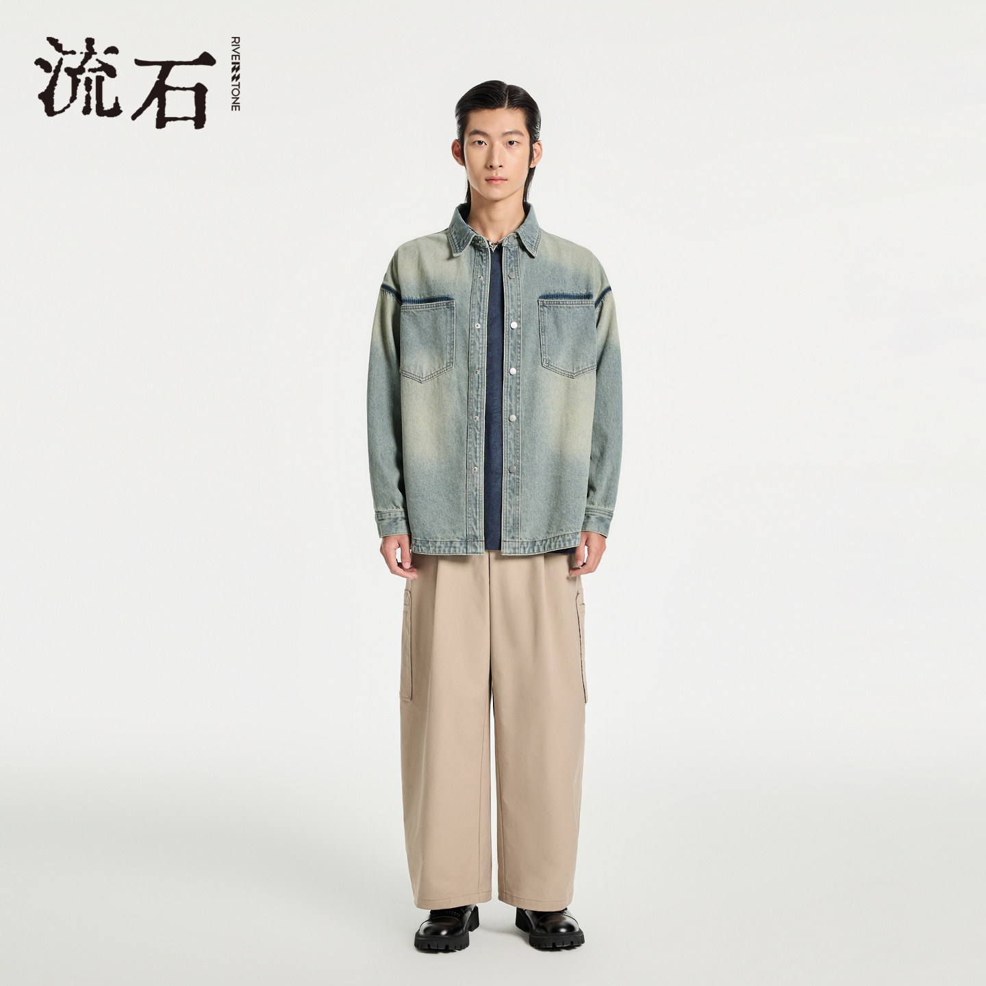 流石男装重水洗休闲牛仔外套2026年春季新款男士重磅宽松复古夹克