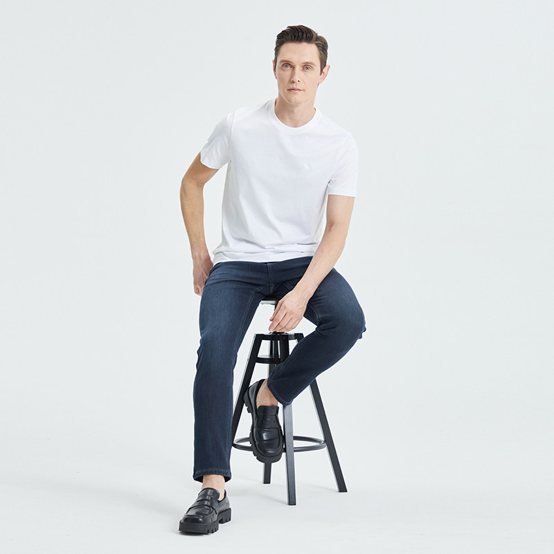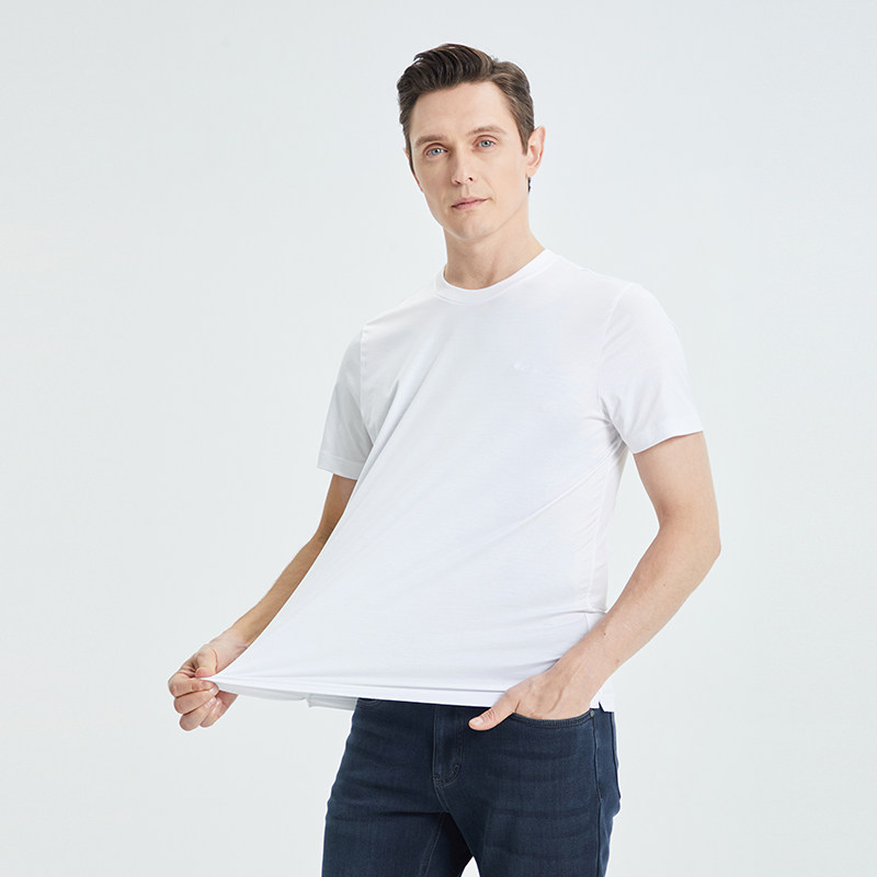SHANSHAN杉杉官方中年男士短袖t恤纯棉2025夏季新款白色圆领t恤男