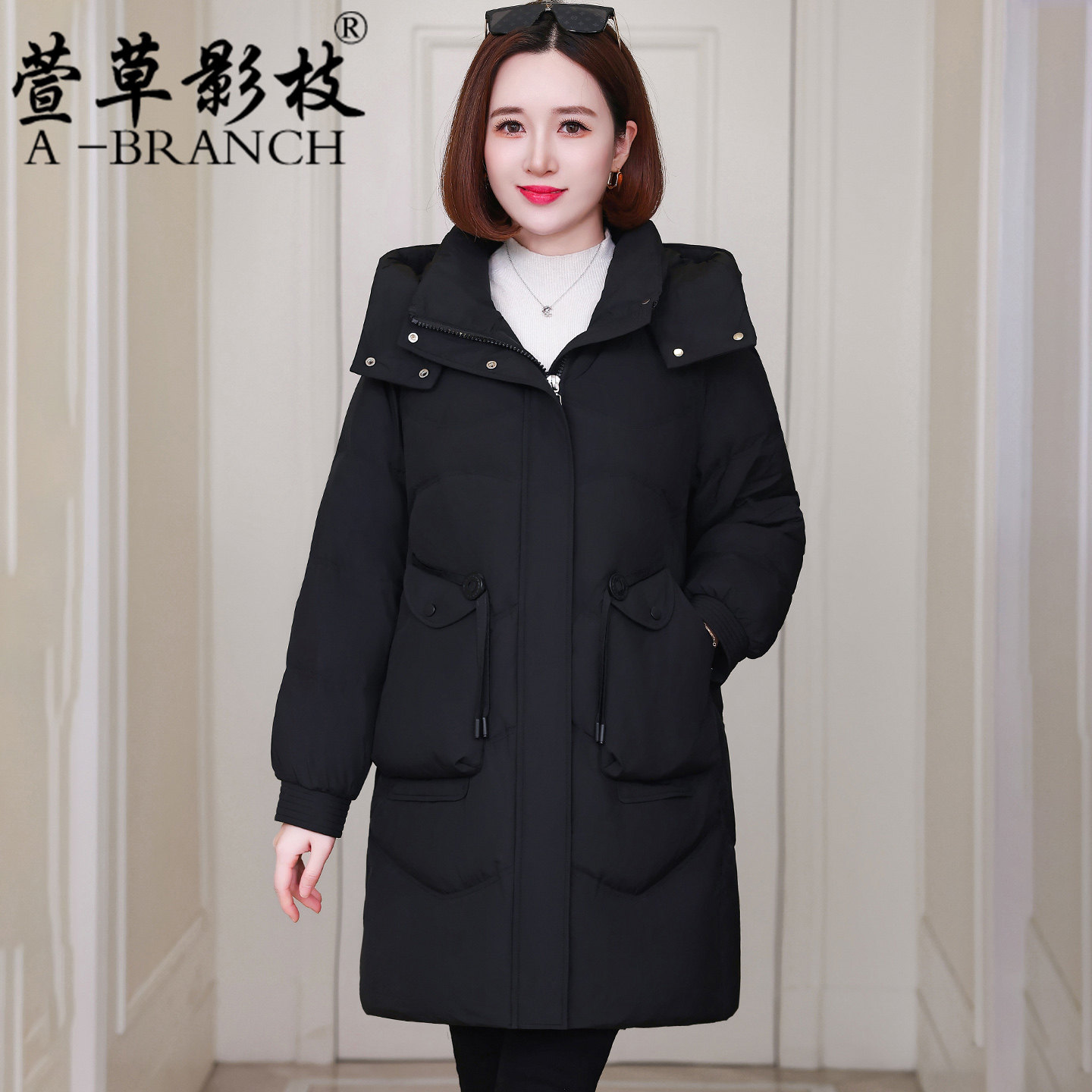 中年妈妈羽绒服女冬季中长款百搭宽松女士保暖时尚白鸭绒冬装外套
