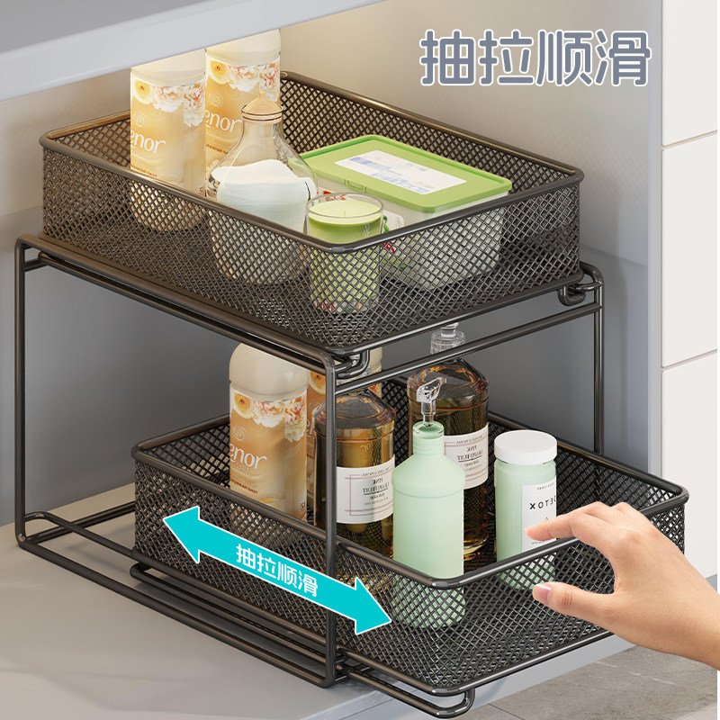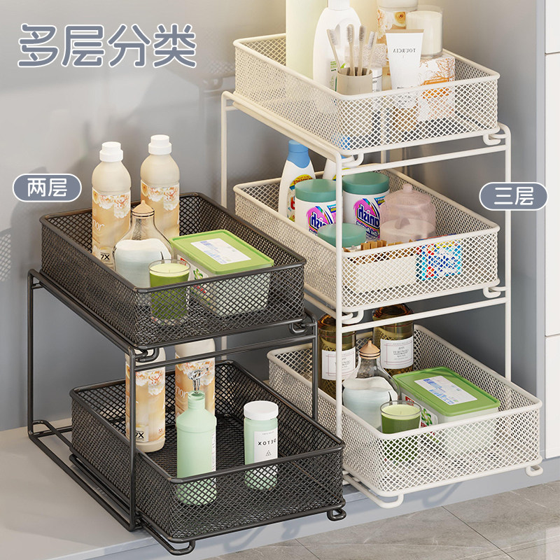 下水槽置物架拉篮式浴室洗漱洗手台收纳柜双层化妆品抽拉分层抽屉
