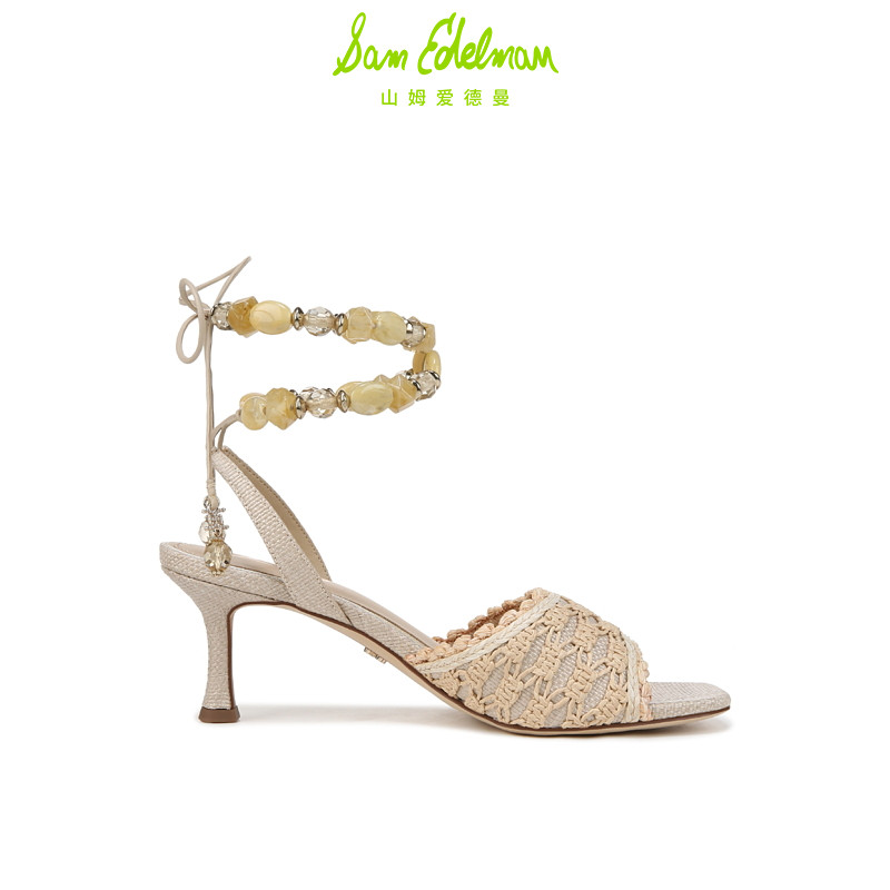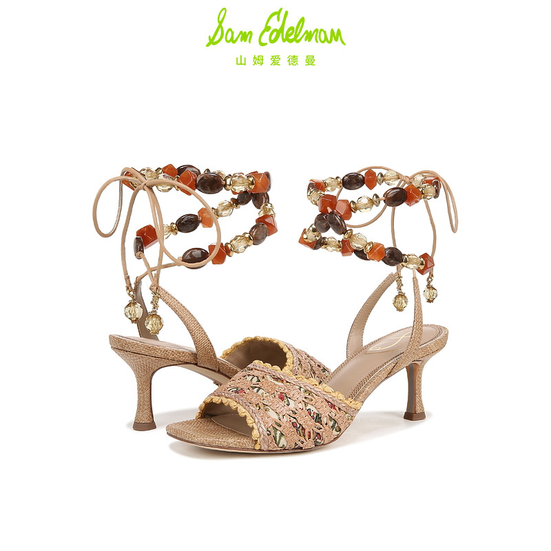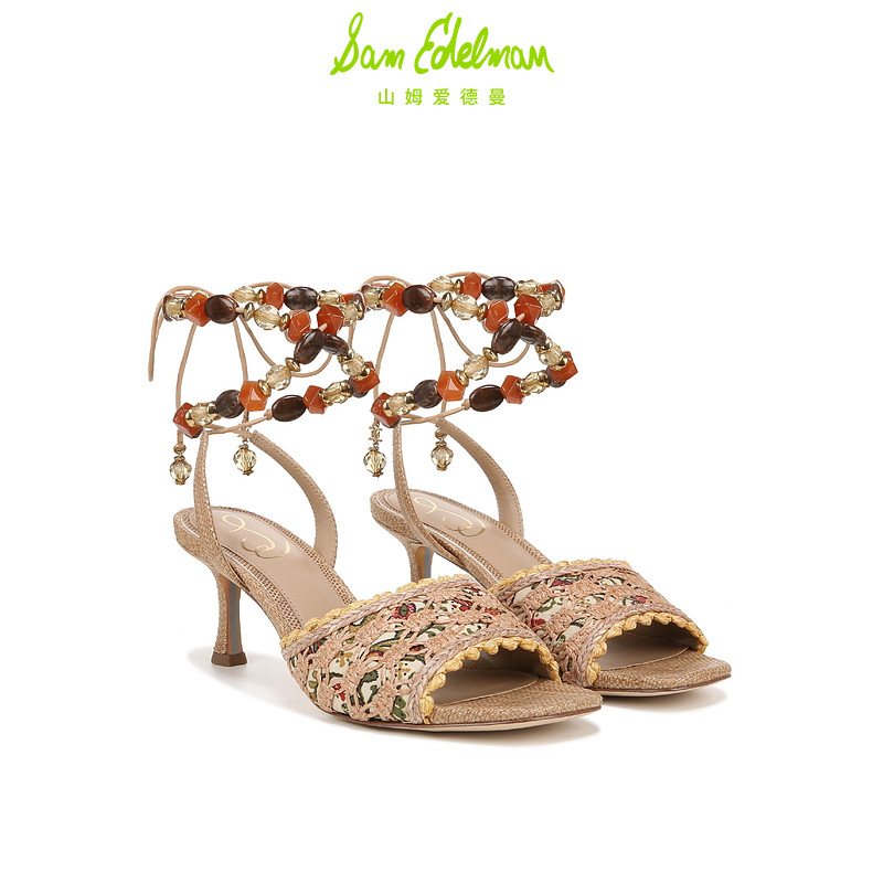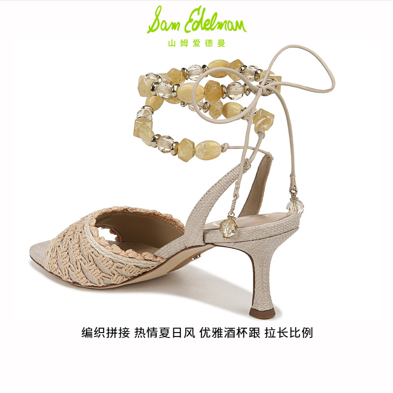 SAM EDELMAN山姆爱德曼夏露趾波西米亚高跟系带亚麻凉鞋PAMELA