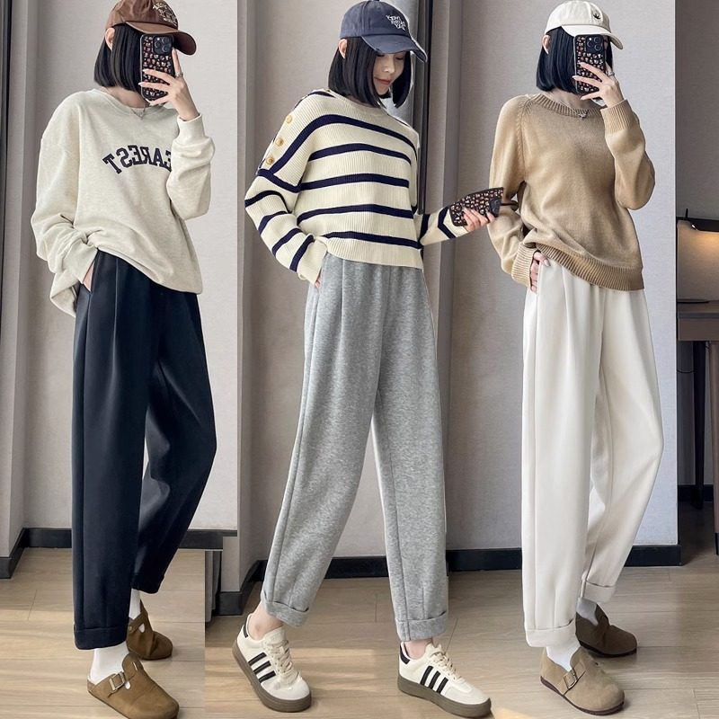 婧麒孕妇裤子秋冬款外穿休闲裤小个子哈伦裤托腹不勒肚长裤孕妇装
