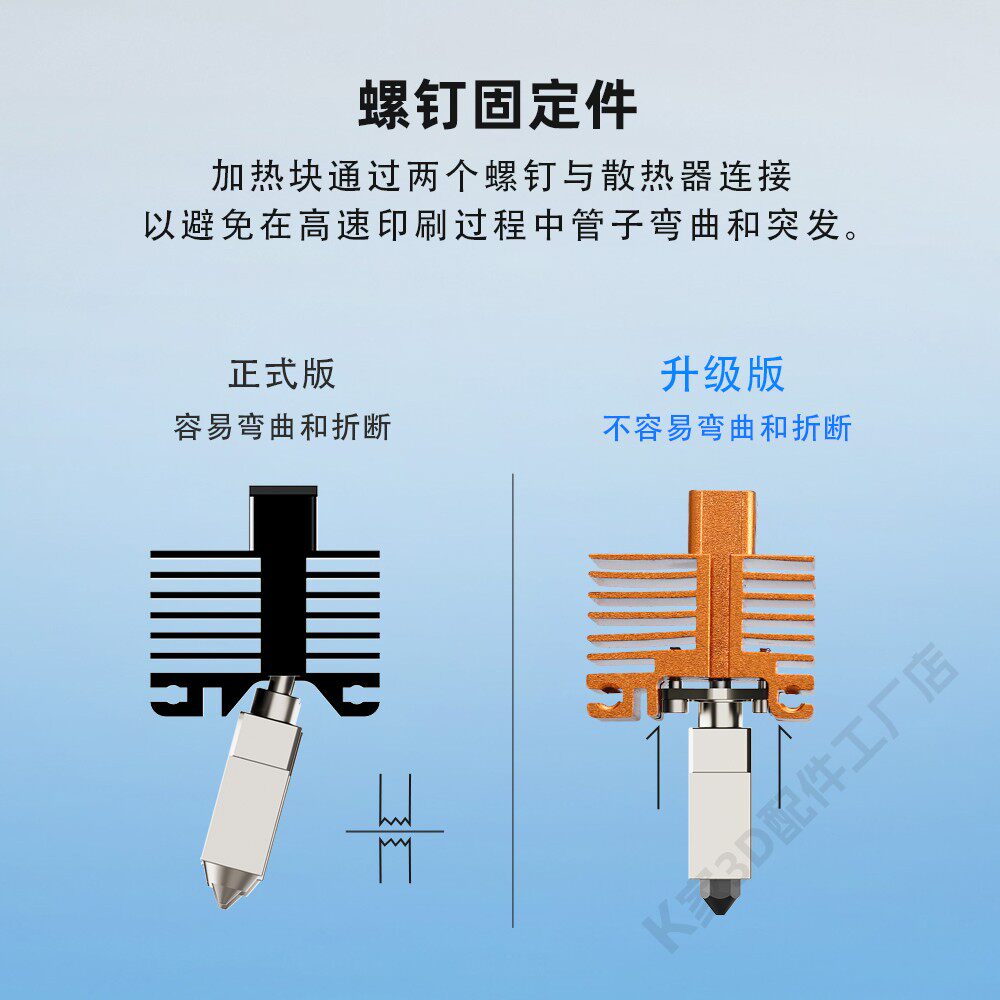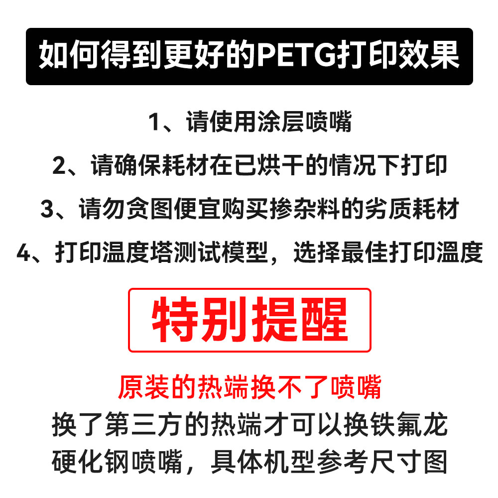 拓竹X1/P1P铁氟龙涂层热端套件2.0挤出头硬化钢可拆卸喷嘴3D打印