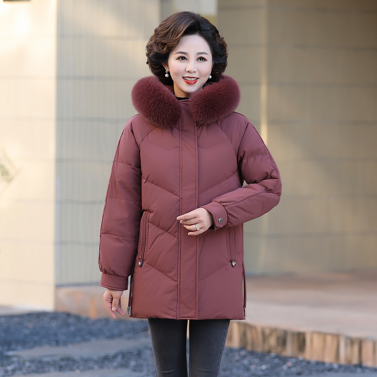 雪中飞2024冬新款女士妈妈款中长款羽绒服连帽大毛领纯色温馨保暖