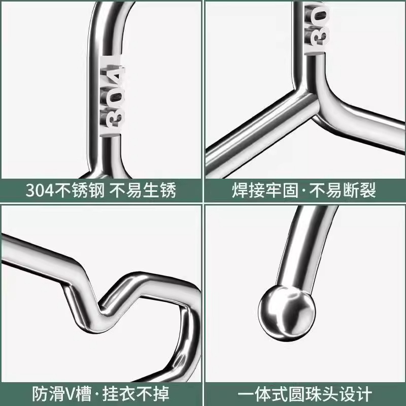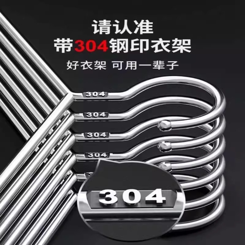 304不锈钢衣架晾衣架家用挂衣宿舍加粗加厚挂钩无痕阳台防滑实心