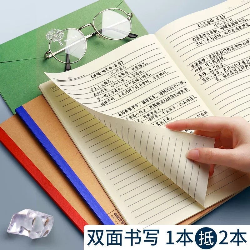 16k牛皮纸笔记本子初中生专用高中生大a4作业本学习横线本单行本练习本簿软面抄加厚16开记录本记事本日记本