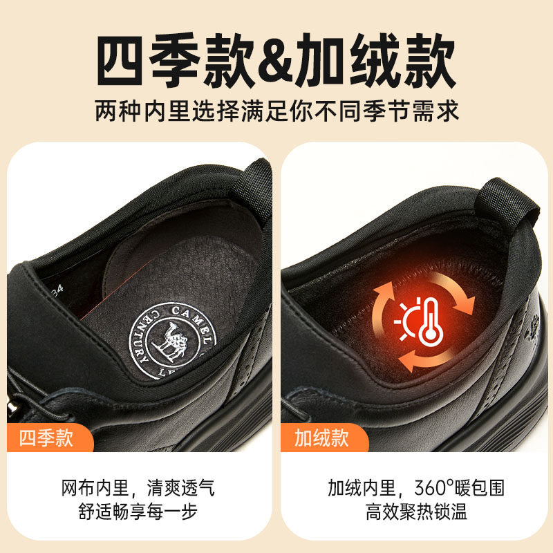 骆驼男鞋2025冬季新款加绒商务软底真皮运动皮鞋男款爸爸休闲鞋