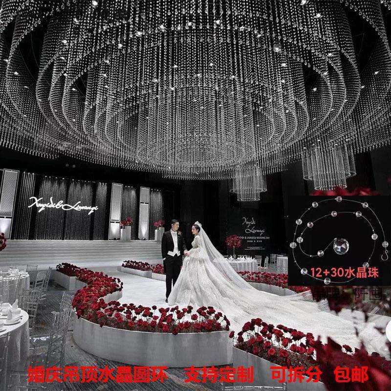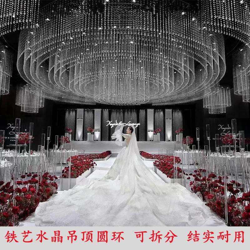 婚礼堂婚庆道具铁艺吊顶圆环婚礼舞台造型水晶珠帘菠萝珠定位架子