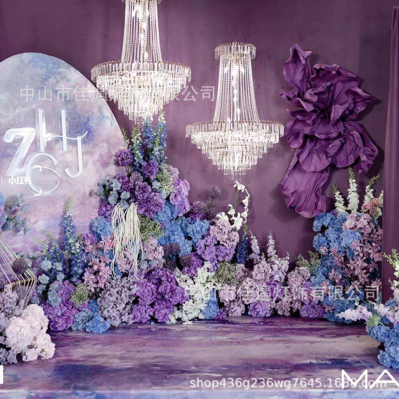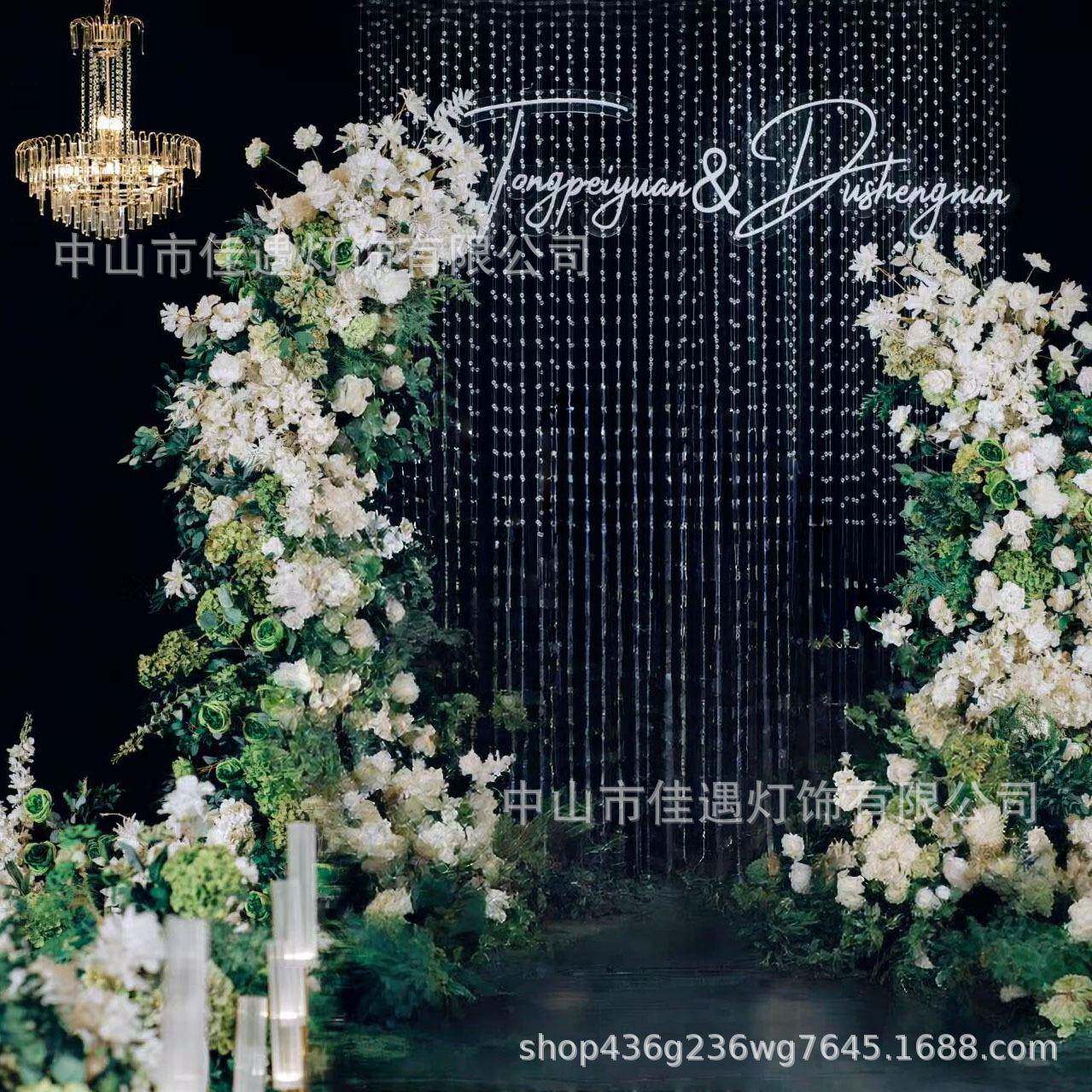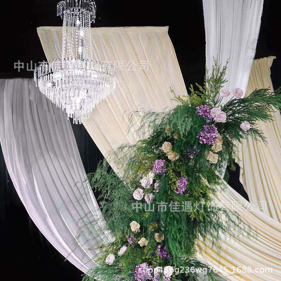 厂家直销水晶珠帘吊灯婚礼礼堂北欧装饰道具铁艺金属婚庆水晶吊灯