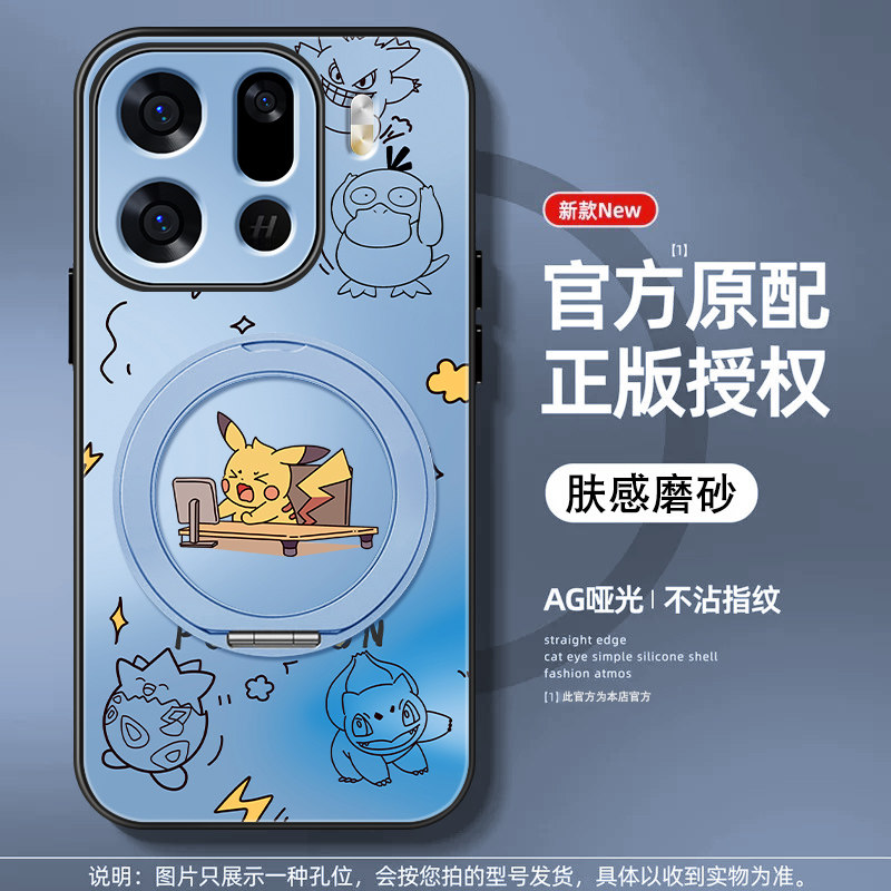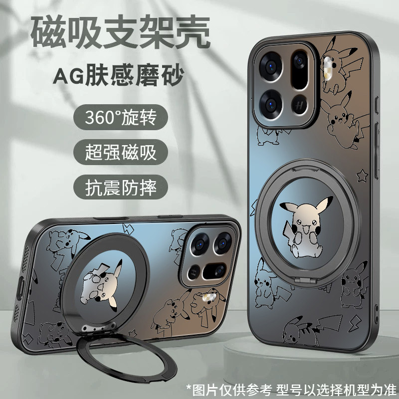 适用oppofindx9Pro手机壳FindX9皮卡丘0pp0磁吸旋转支架高级感防摔保护套男女新款磨砂卡通全包硅胶软边外壳