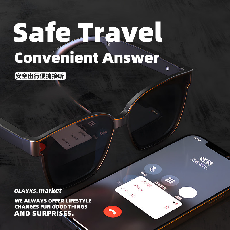 智能AI蓝牙眼镜耳机黑科技运动太阳镜提词器开车防漏音多功能墨镜