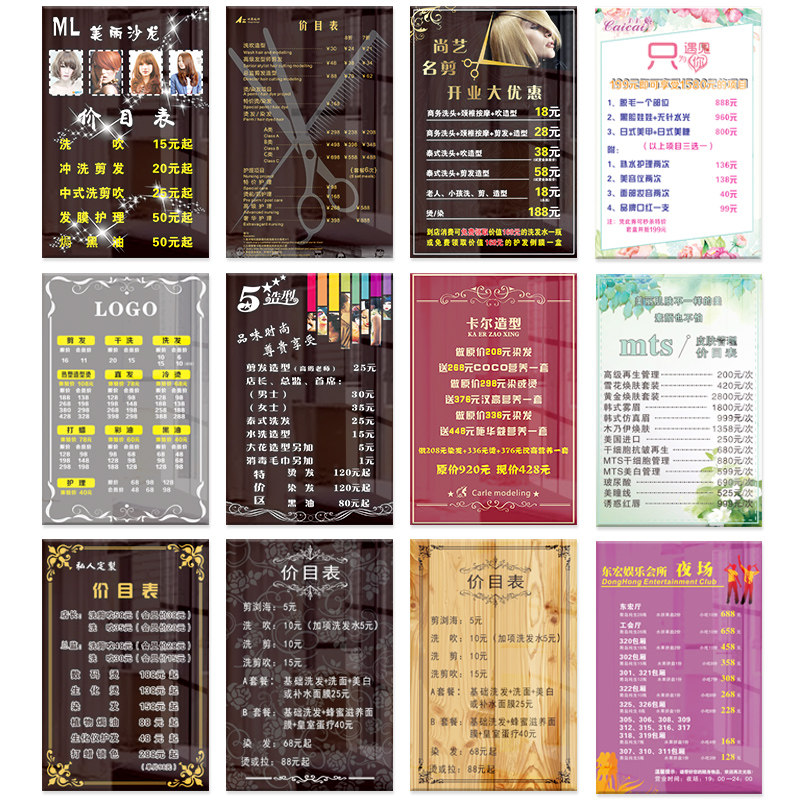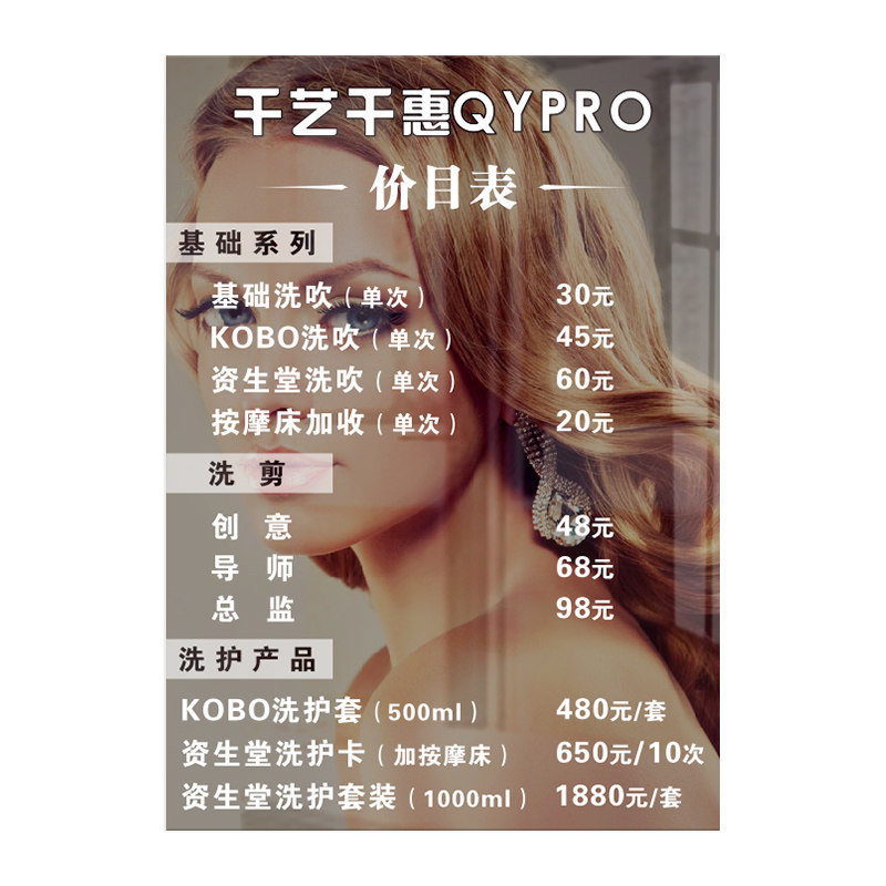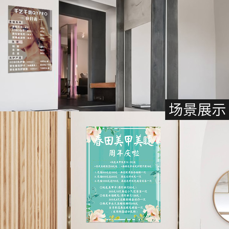 亚克力标识牌贴墙美容院半永久纹绣美甲美发店足浴养生价目价格表
