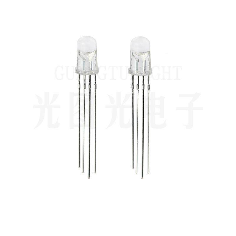 5MM透明全彩RGB F5直插灯珠 LED灯珠 四脚发光二极管彩色指示灯