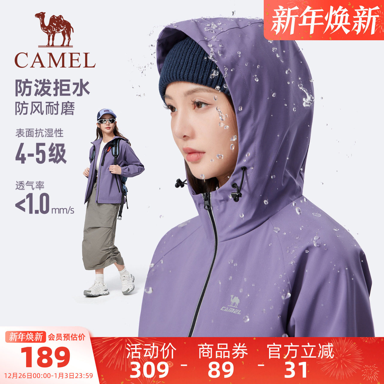 骆驼运动风衣女拒水夹克秋冬户外防水防风耐磨外套徒步登山服男