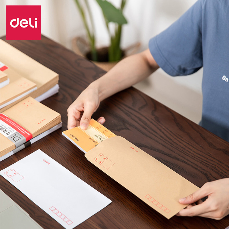 得力加厚信封牛皮纸白纸邮局大号信纸发票收据收纳信封纸工资袋子