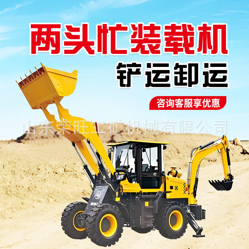 两头忙挖掘装载机多功能农用工程工地柴油四驱铲车前铲后挖一体机