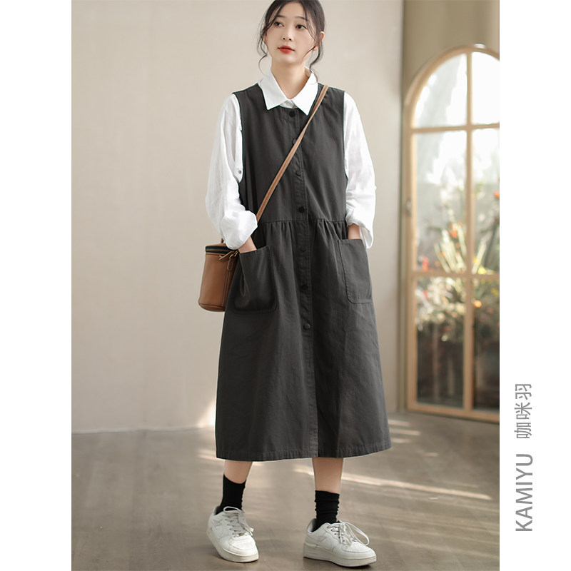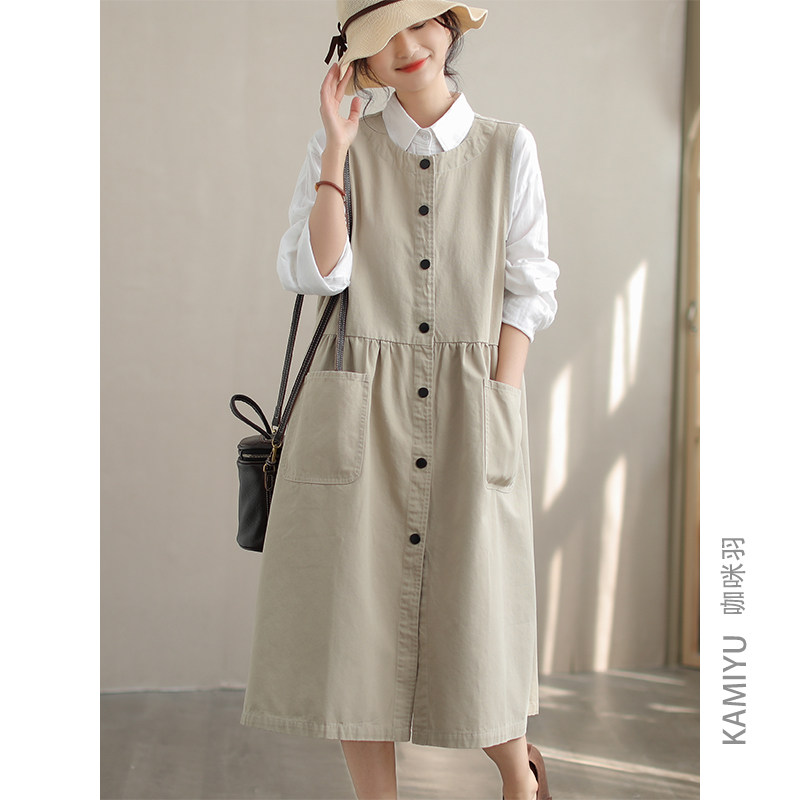 咖咪羽连衣裙新款无袖全棉百搭高级感文艺时尚女士中长款女装裙子