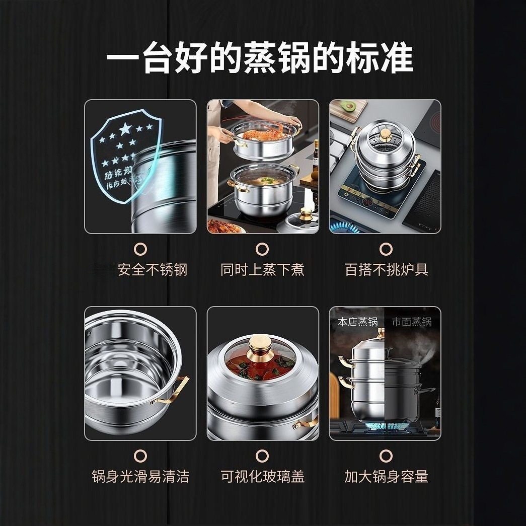 蒸锅家用304不锈钢加厚多层316蒸笼多功能电磁炉大容量蒸煮炖汤锅