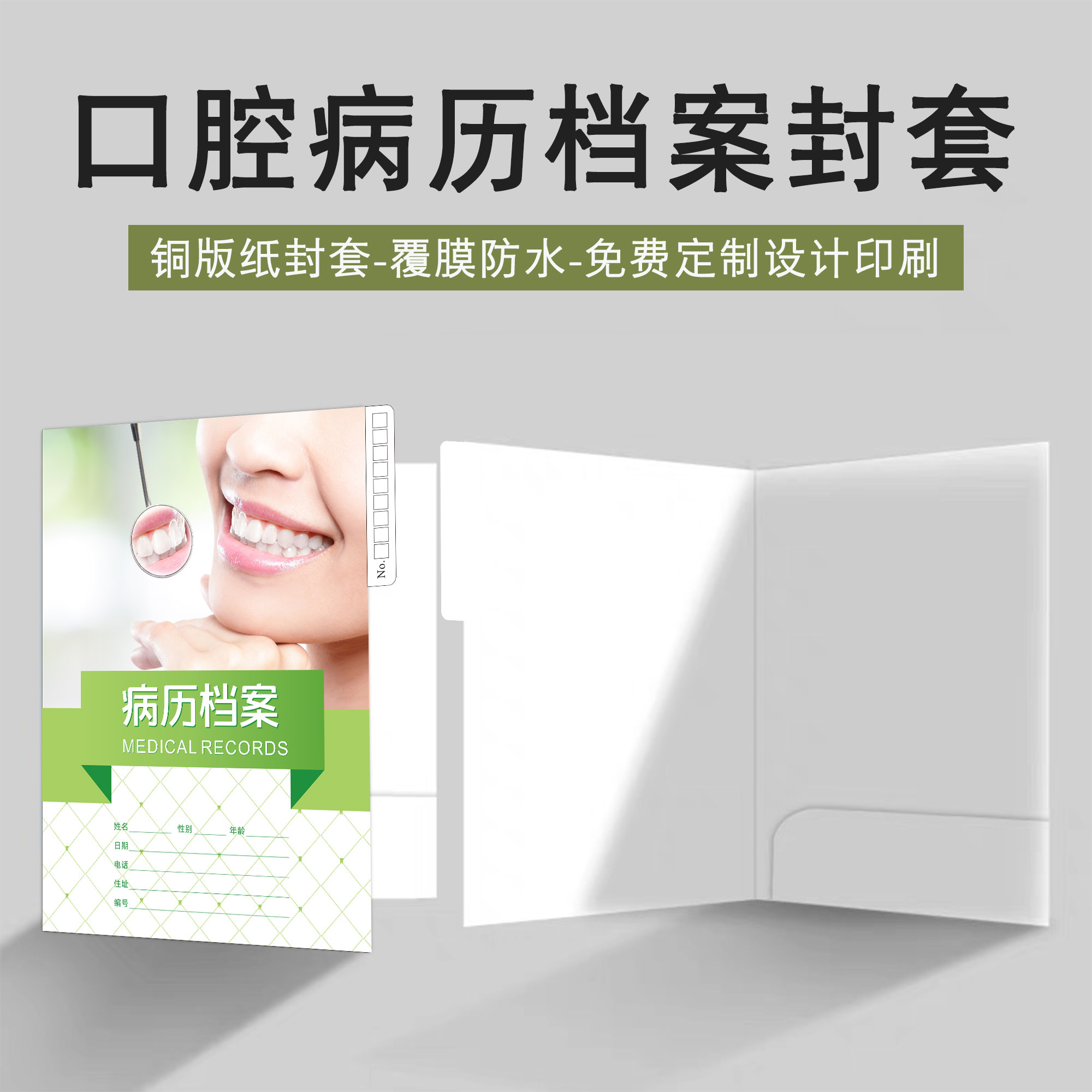 口腔病历档案封套牙科门诊热熔胶插页外壳口腔文件夹体检报告封套