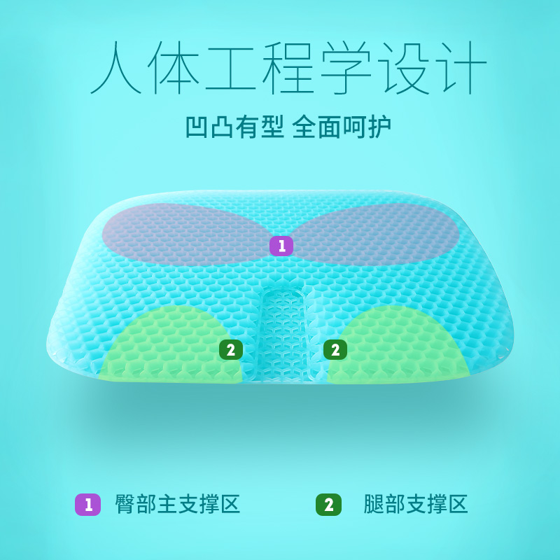 夏季蜂窝凝胶坐垫加大加厚汽车坐垫凉感冰垫久坐不累减压透气座垫