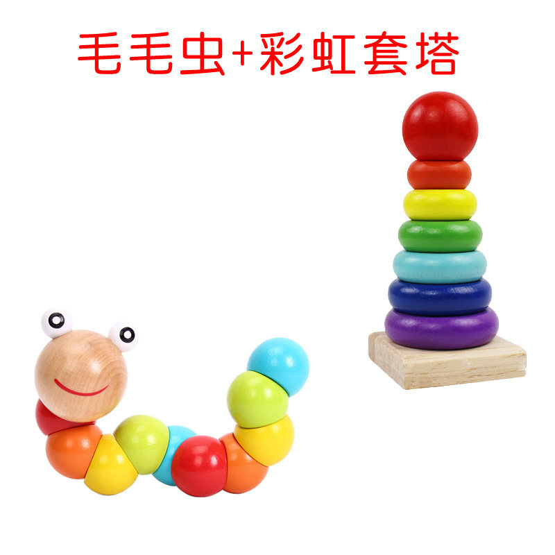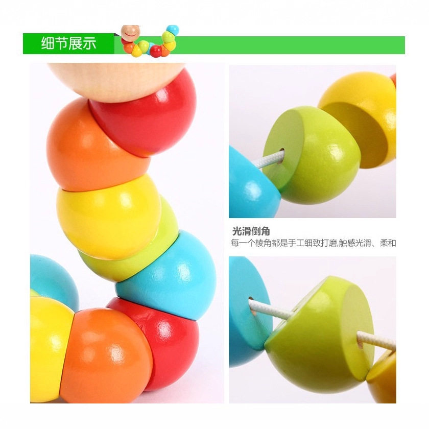木质百变扭扭虫毛毛虫串珠绕珠儿童宝宝早教益智玩具颜色认知积木