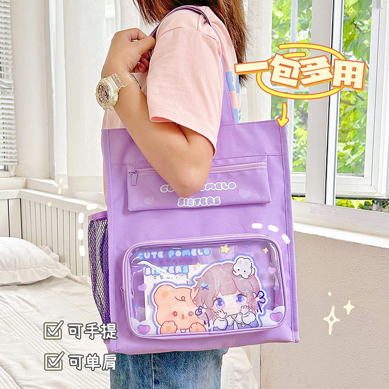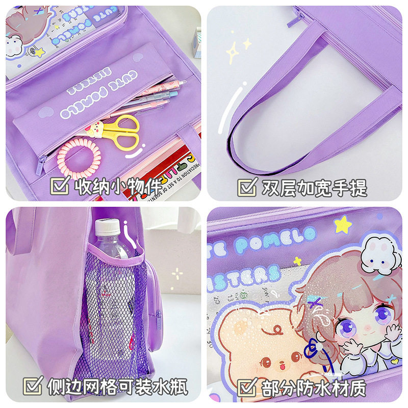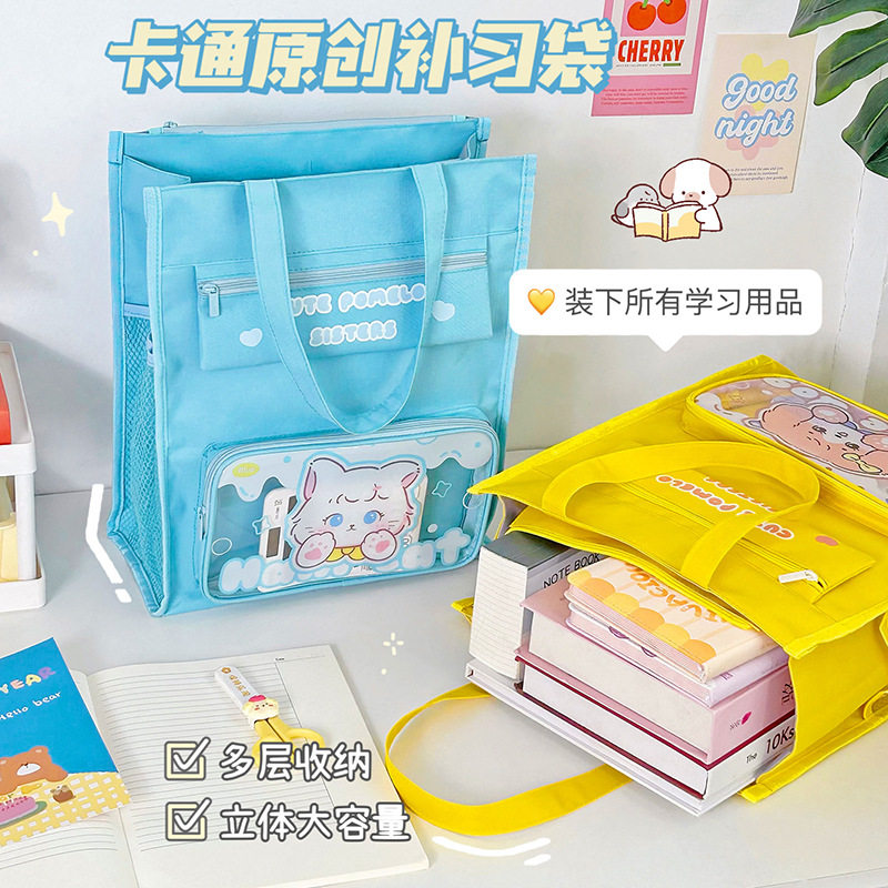 萌柚姐妹大容量学生补习袋可爱学生手提袋拎书袋卡通补课包美术袋