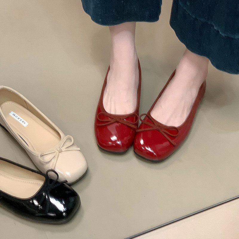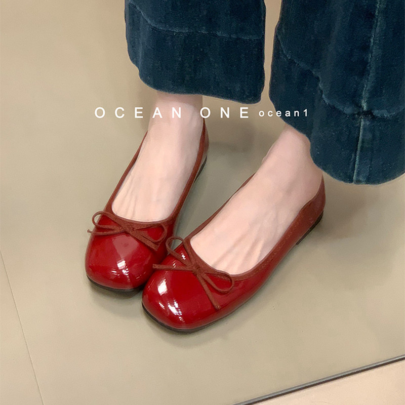 米霏~【羊皮版】红色单鞋女平底法式气质软底芭蕾瓢鞋温柔晚晚鞋
