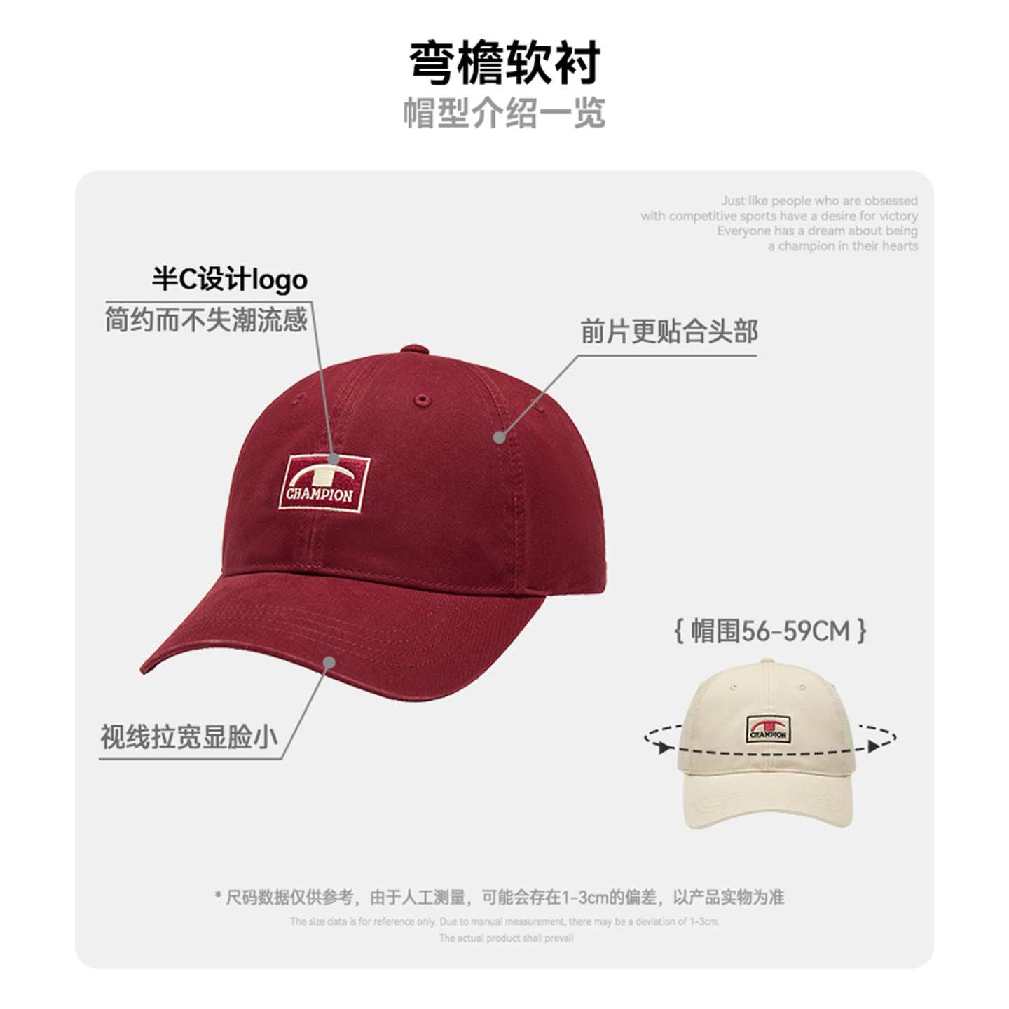 champion冠军经典棒球帽logo刺绣鸭舌帽男女情侣小脸