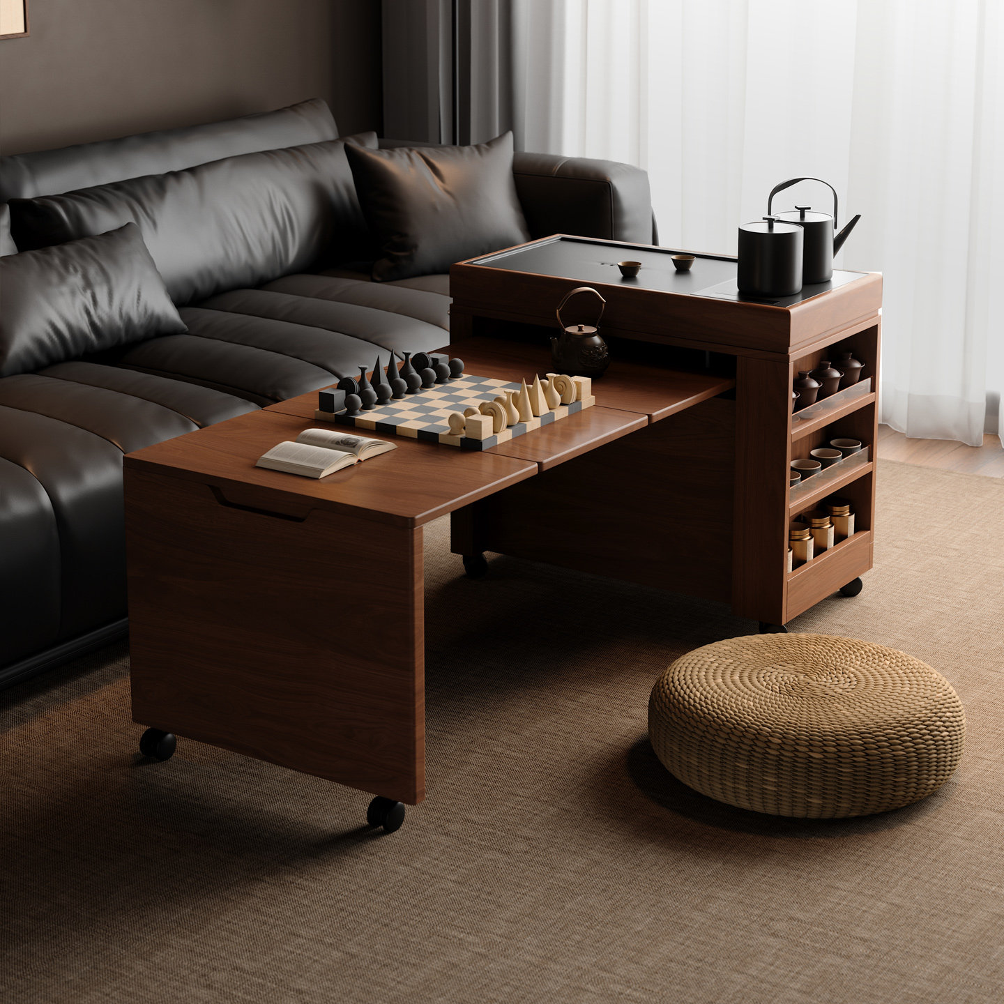 木小咖茶缘家用实木茶台客厅可移动茶几带烧水茶桌复古阳台茶水柜