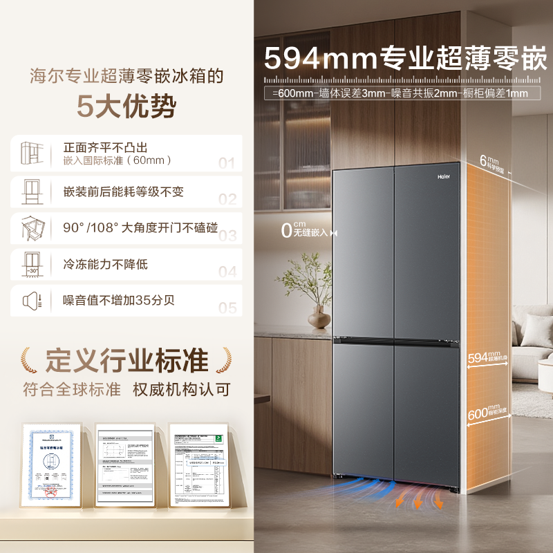 以旧换新补贴海尔485山茶花法式双开薄零嵌入式冰箱家用一级官方