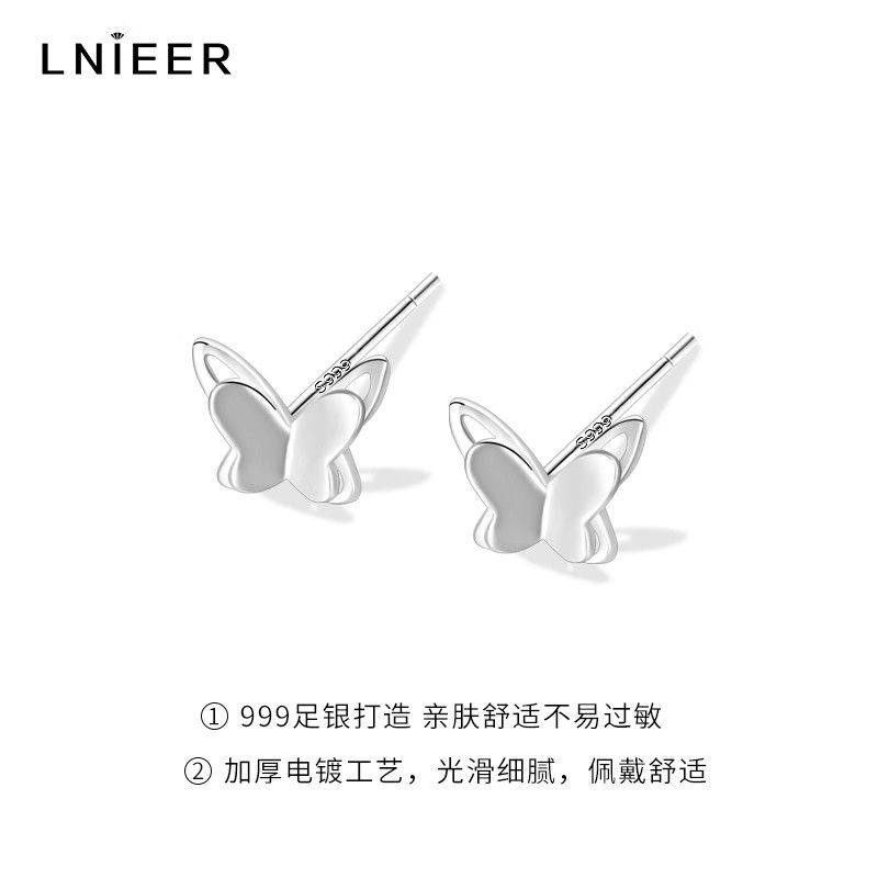 S999纯银蝴蝶耳钉女养耳洞耳环2025新款爆款免摘小巧精致耳饰足银