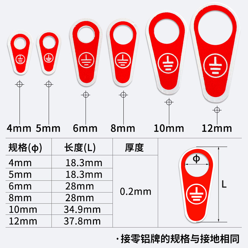 不锈钢接地铝牌铭牌金属接零标识牌铝接地线标识标牌孔径4/5/6/8