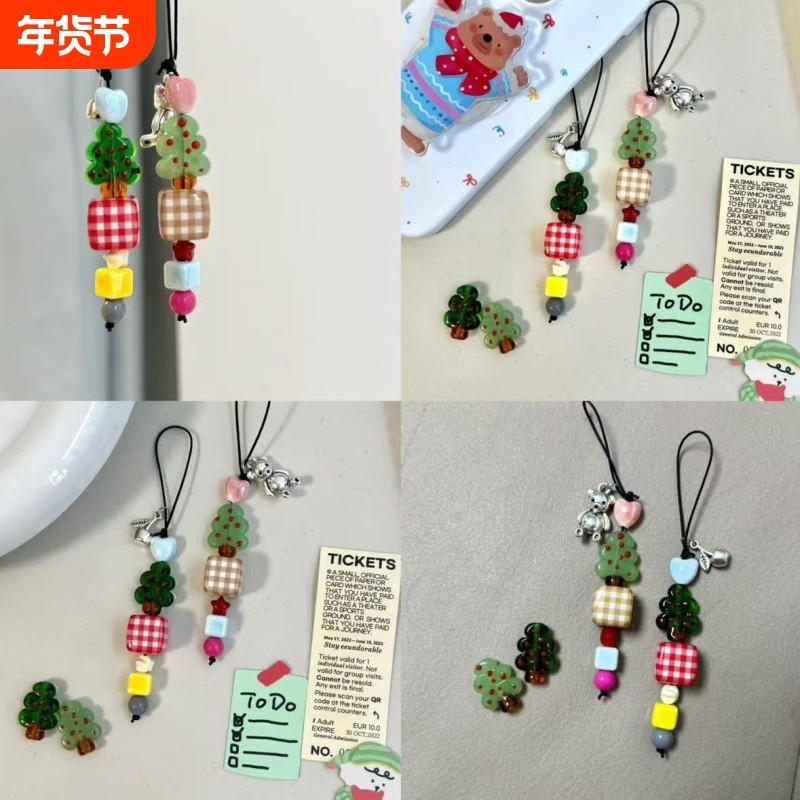 原创小众童趣手作琉璃圣诞树小熊串珠手机链短链挂件小众闺蜜礼品
