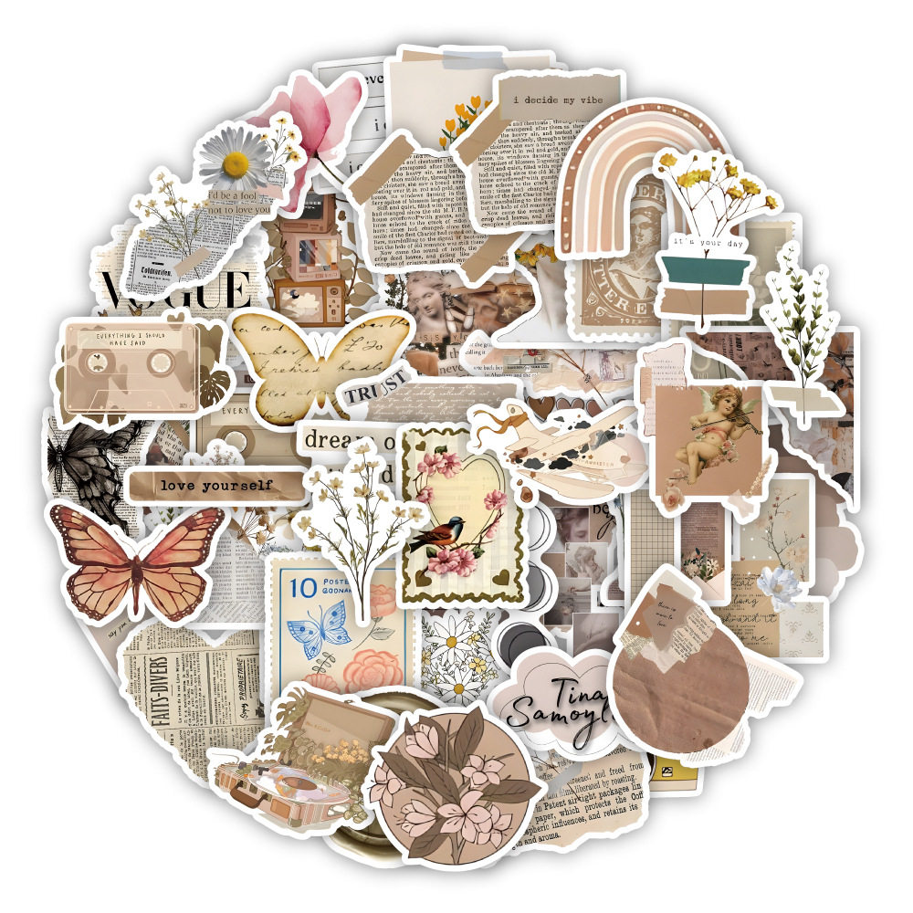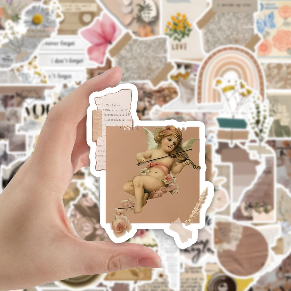 120张高颜值欧美复古报纸风残缺日记贴纸DIY创意水杯手帐记录贴画