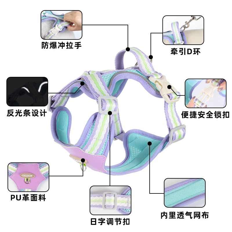 狗狗牵引绳胸背工字型宠物夏季透气溜狗绳中小型犬柯基比熊胸背带