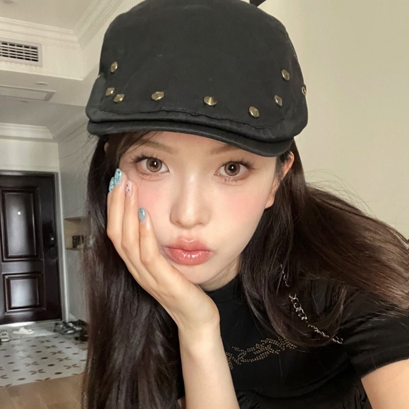 复古铆钉前进帽女春夏季百搭嘻哈反戴画家帽薄款休闲贝雷帽显脸小