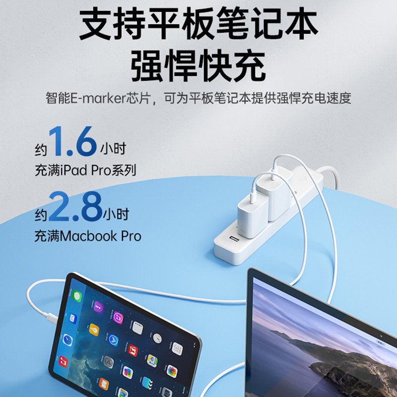 正品适用华为电脑充电线macbook air/mac/pro笔记本充电器USB-C65W电源适配器头手机快充数据线原双Typec套装