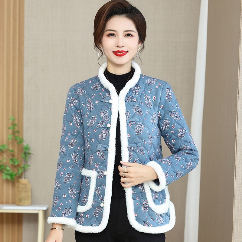 妈妈冬装碎花棉衣中老年人新款加绒贴片保暖棉服奶奶内外穿小棉袄