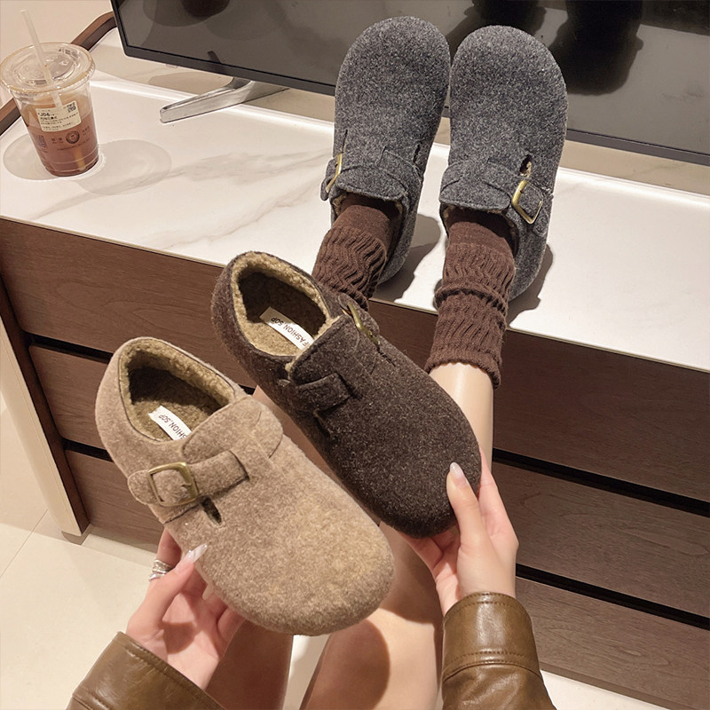 毛呢小土豆内增高一脚蹬加绒勃肯鞋女2025秋冬保暖棉鞋灰色毛毛鞋