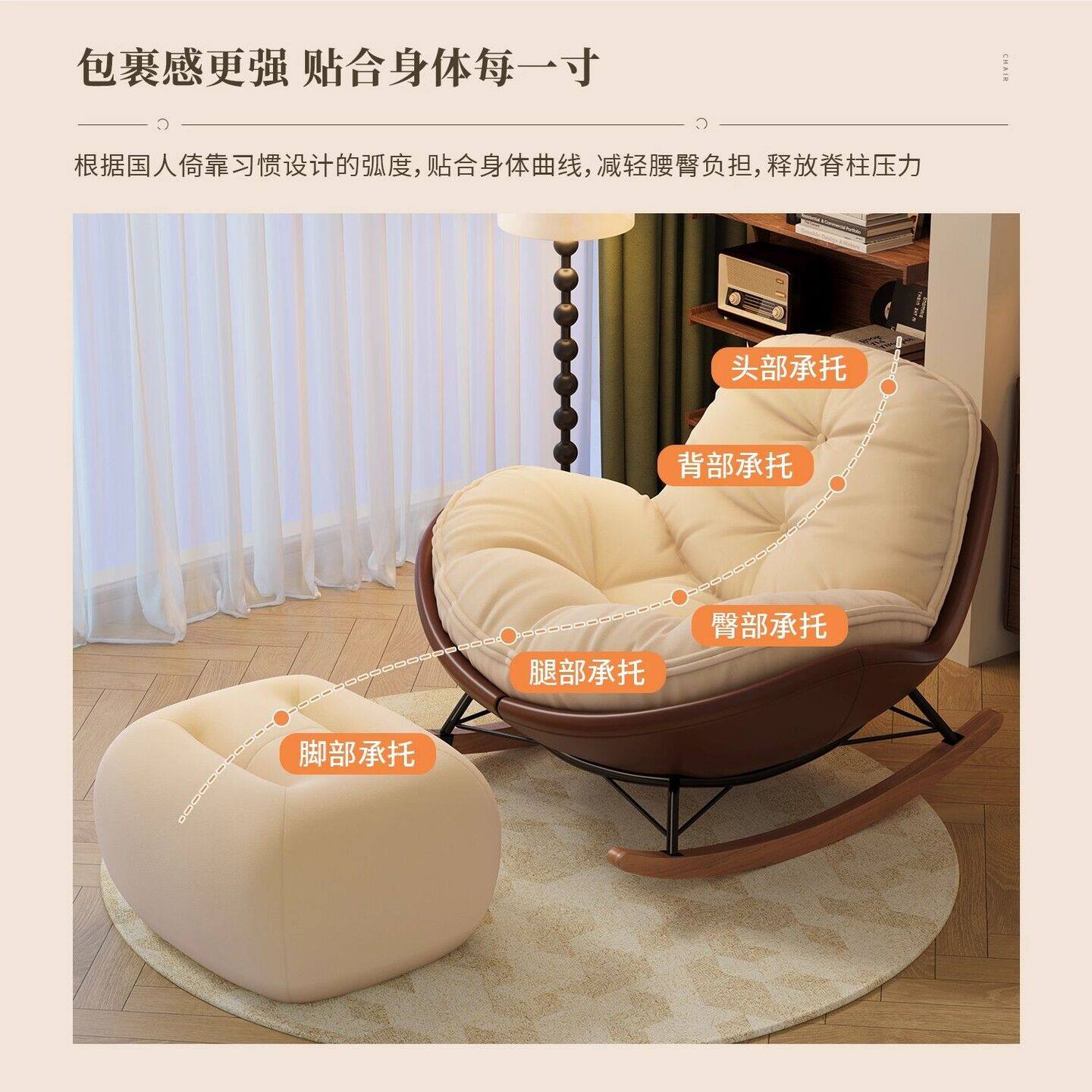 懒人沙发客厅2025新款单人摇椅阳台家用休闲窝窝椅成年人摇摇躺椅