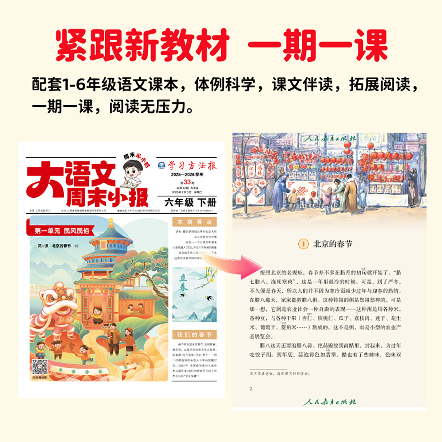 2026新年版春节民俗寒假学习周报大语文趣读画报人教版小学一二三四五六年级半小时晚读画报学习阅读报纸知识拓展一周一期期刊杂志
