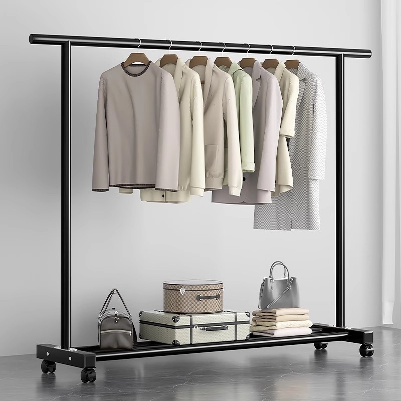 晾衣架落地家用简易卧室衣服收纳架可移动大容量加粗晾晒衣帽架子