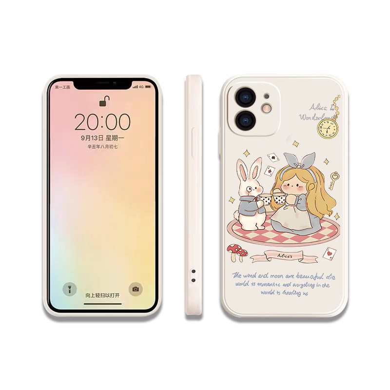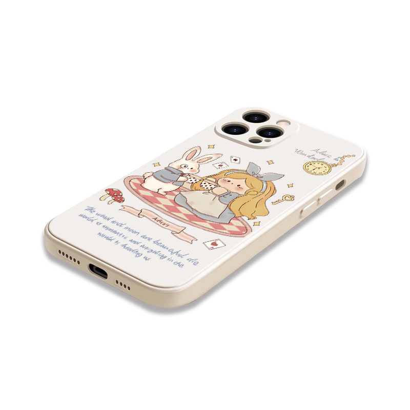 可爱少女与兔兔一起玩耍液态硅胶全包手机壳适用苹果17nova14华为p70mate70小米15opporenovivo荣耀iPhone15