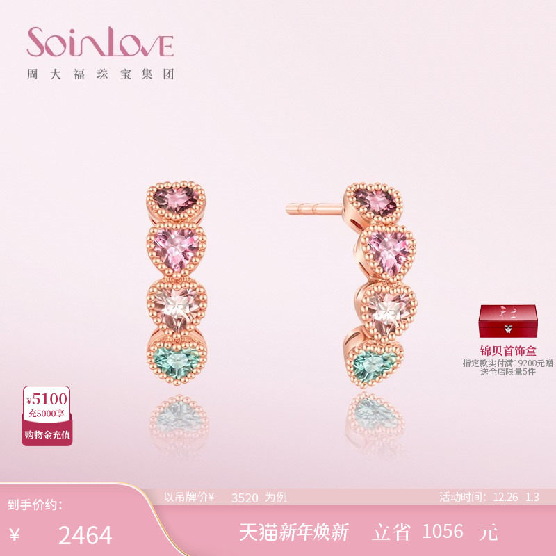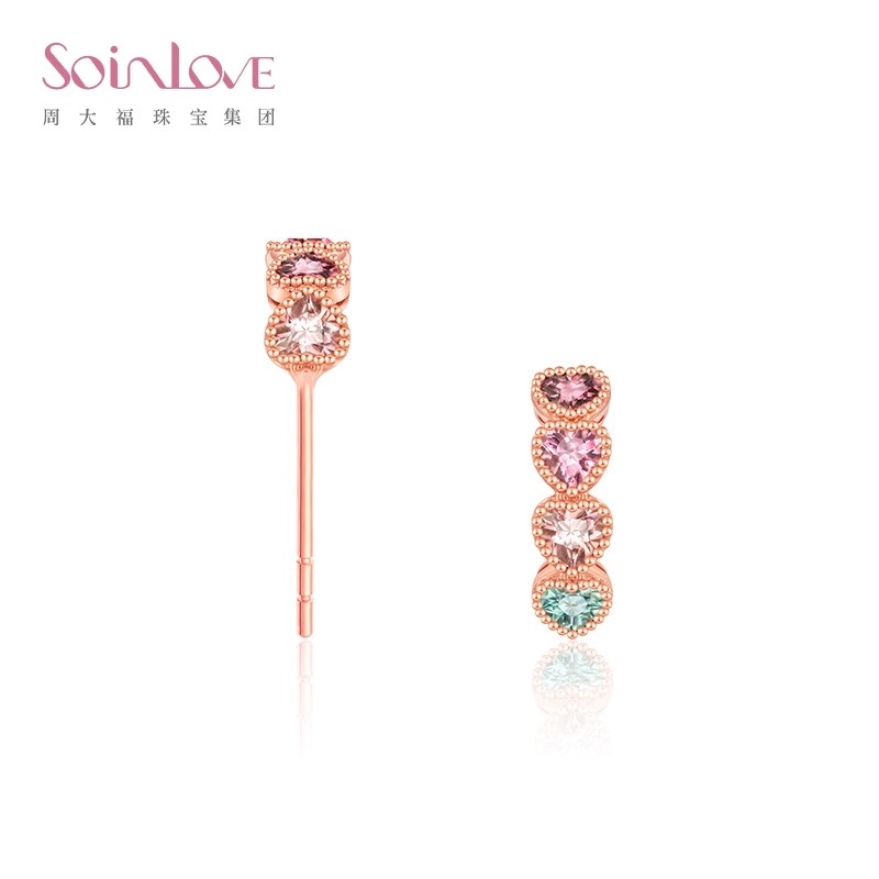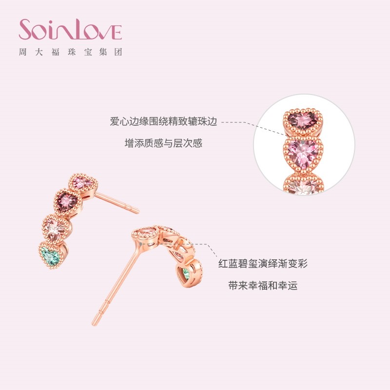 周大福「宝藏女孩」彩虹18金碧玺耳钉宝石耳饰女VV237
