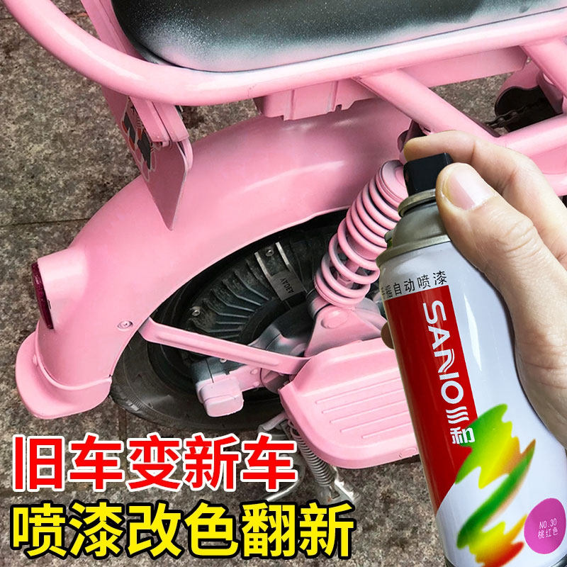 三和粉色自喷漆白桃粉红色电动车喷漆电瓶车摩托汽车漆改色防锈漆